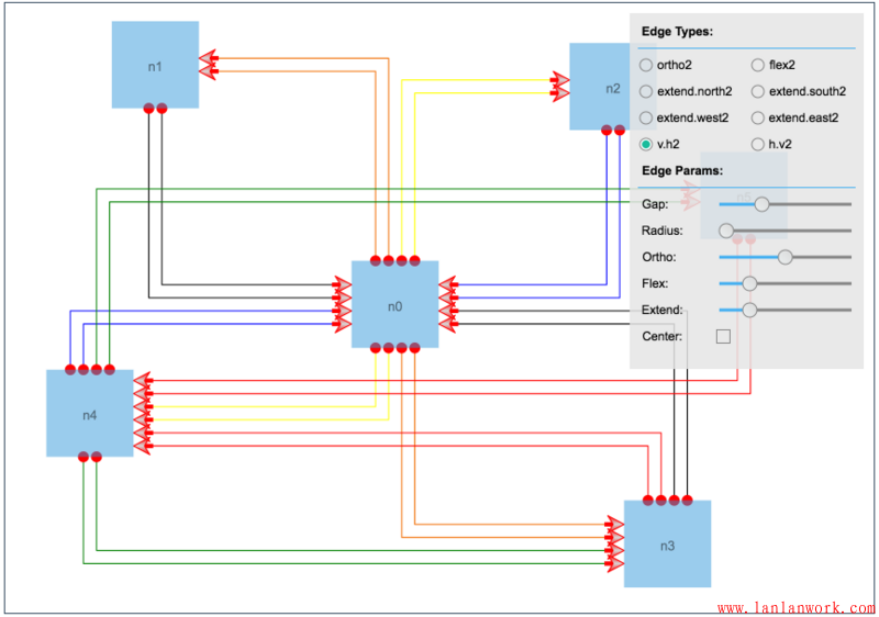 對于連線 Edge,HT 還提供了自定義走向的擴展機制,并提供了相應的預制擴展連線類型插件,參見《HT for Web 連線類型手冊》http://www.hightopo.com/guide...
