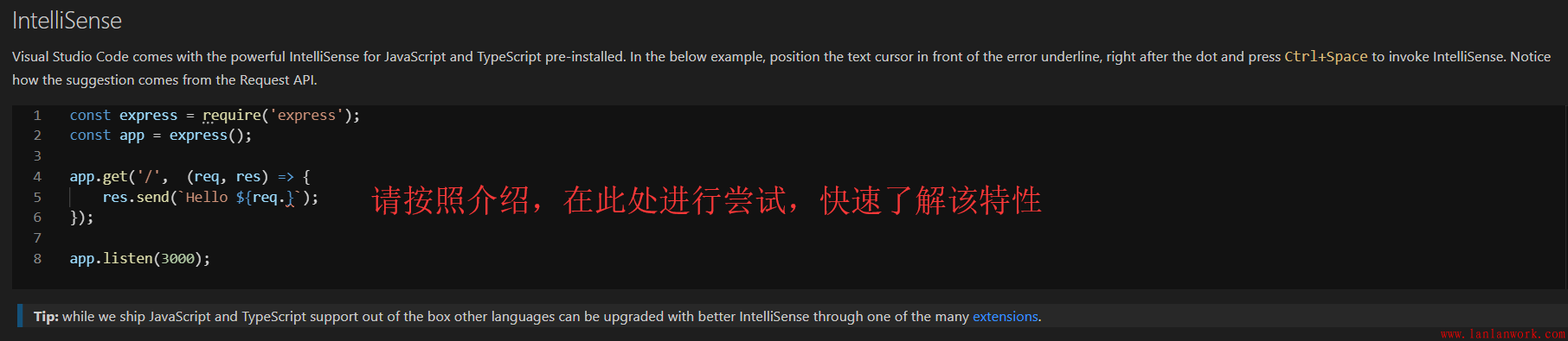 Visual Studio Code 預裝了強大的JavaScript和TypeScript智能感知。