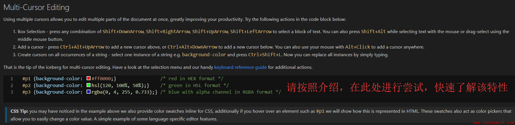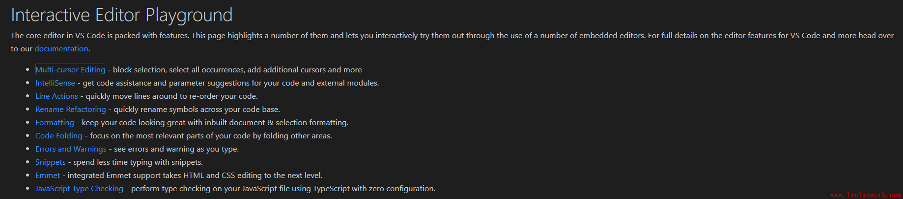 其實VSCode編輯器本身自帶了一個功能(Interactive Editor Playground :可以讓你快速了解VSCode的特性,并且是可以交互的),