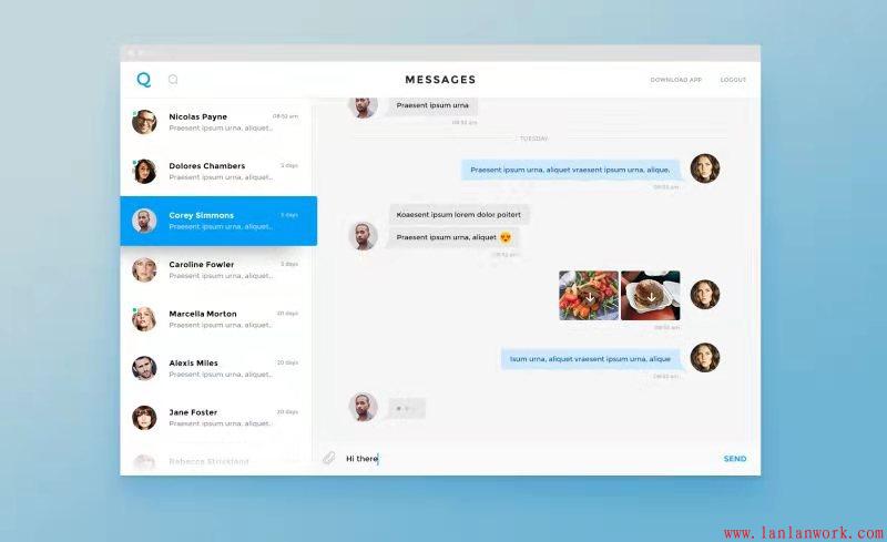 即時通訊界面設計 表達其物流行業的專業性和商務性,標識整體精致細膩,令人印象深刻,在界面設計時以厚重,大氣的配色方案和視覺風格提升整個品牌的含義。