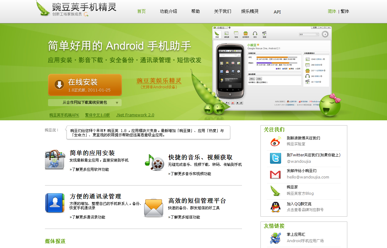 舊版和新版,適合了不同時(shí)期豌豆莢手機(jī)精靈推廣的需要。當(dāng)拓展開市場之后,產(chǎn)品就要好的足以打動(dòng)人,吸引不斷的去下載、使用,蘋果的網(wǎng)站也是如此。化繁為簡,至道無難。
