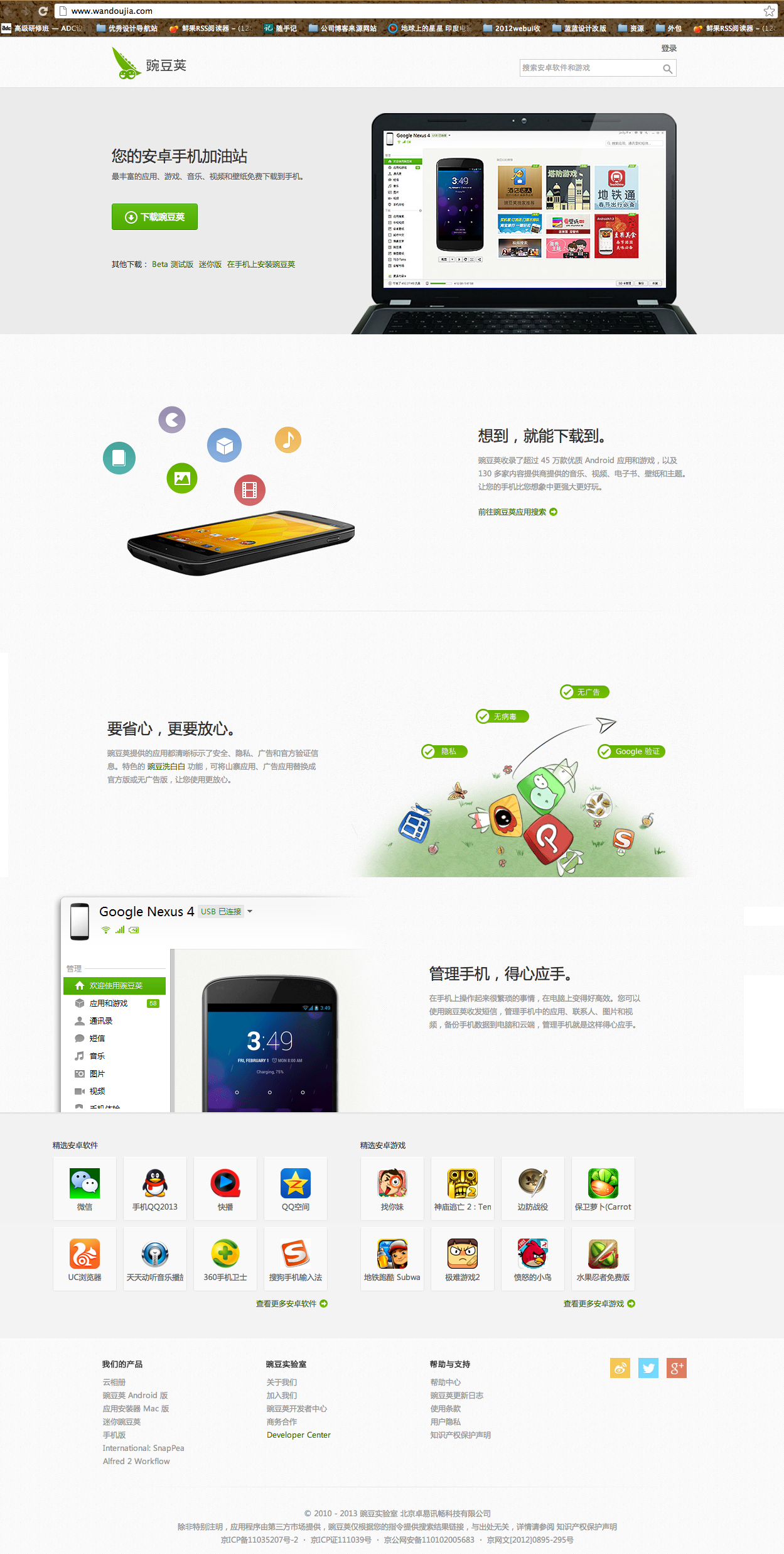 6改版后的豌豆莢手機(jī)精靈官網(wǎng)http://www.wandoujia.com/,極簡主義,該突出的重點(diǎn)“軟件界面圖片”更大更顯眼,去掉了任何多余的東西,下載按鈕顯的更萬灰眾中一點(diǎn)綠,更易找到,增加轉(zhuǎn)化率。