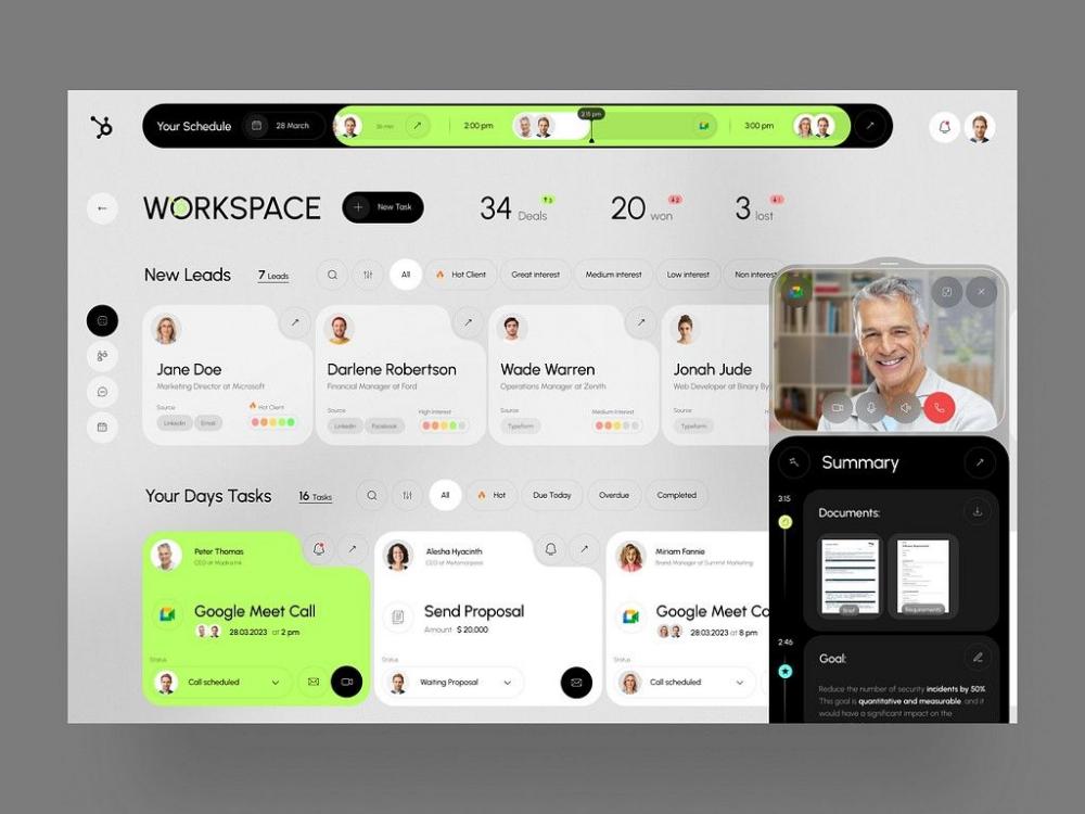 • 模塊化布局:將潛在客戶、日程任務、會議通話等模塊有序排布,用標簽區分客戶意向度,用顏色標注任務優先級,讓銷售團隊一眼獲取核心信息,提升協作效率。