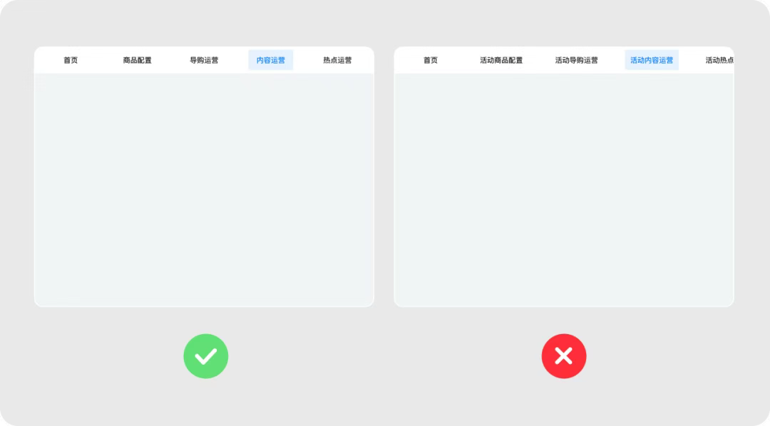3、控制一級導航菜單數量,以免視覺溢出過多。保證文本易于辨識,使用已于理解的圖標,減少重復文字,精簡菜單名稱。