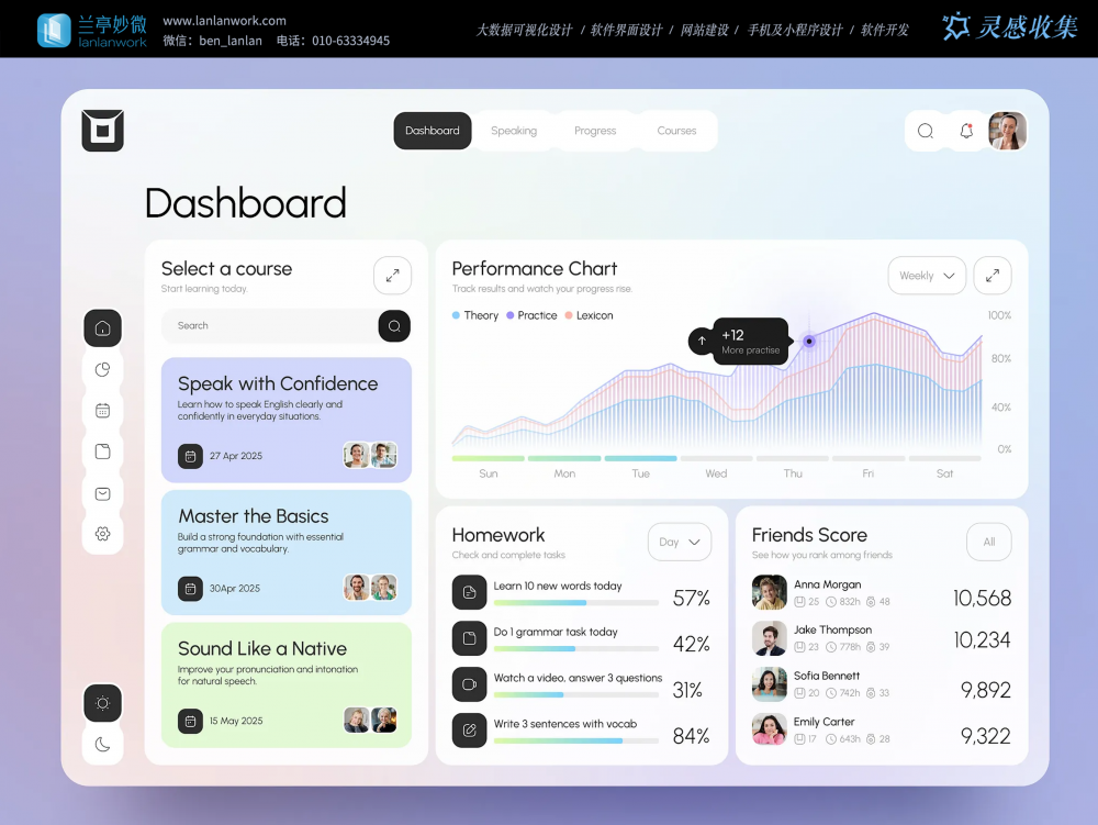 語言學習儀表盤ui設計