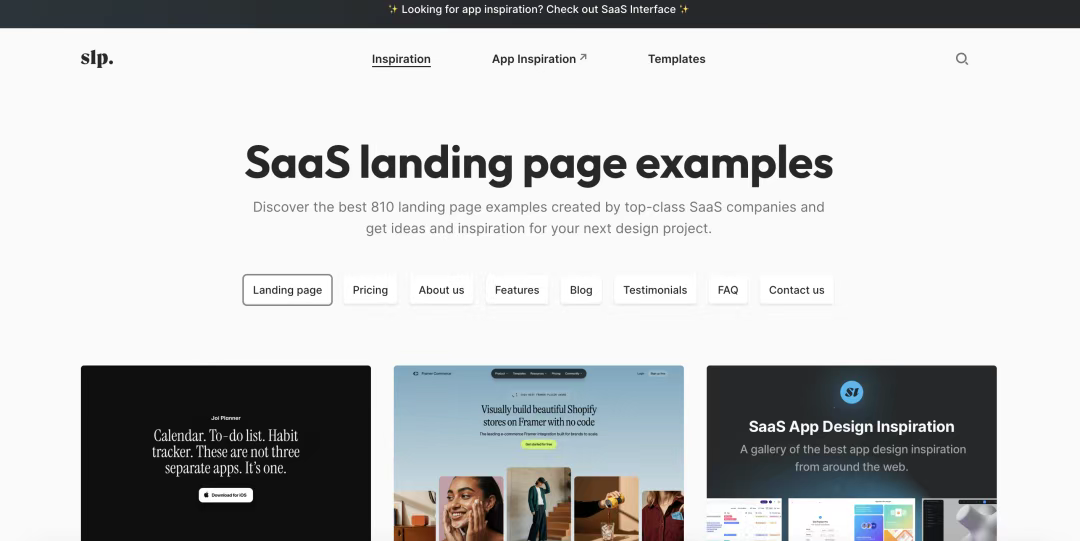 [SaaS Landing Page](http://saaslandingpage.com) 專門收集了SaaS(軟件即服務)公司的優秀著陸頁設計。對于科技創業公司和SaaS產品設計師來說,這是一個寶貴的資源。
